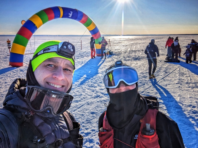 Malgré l’absence de gel prolongé à Longueuil, le lac a eu bien froid, assez en tout cas pour solidement se couvrir de glace. Et pour nous accueillir, l’organisation des Courses CRYO a commandé une vague de froid éponyme, ou quelque chose dans le genre. En tout cas, perdre 25° C en cinq heures de route, on ne voit pas ça tous les hivers…